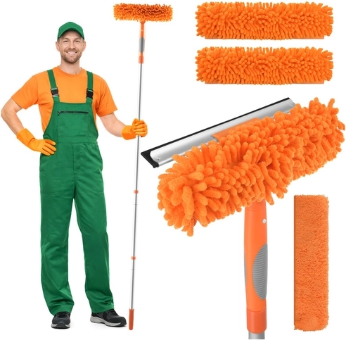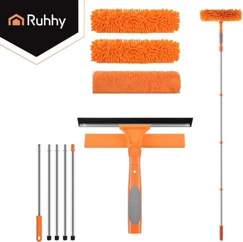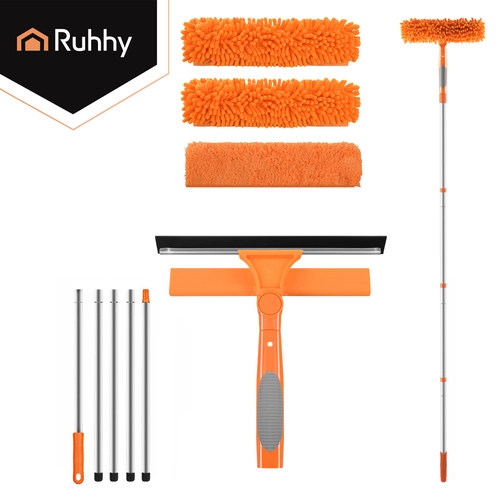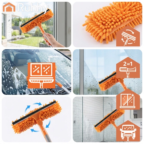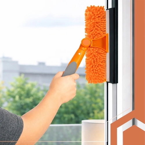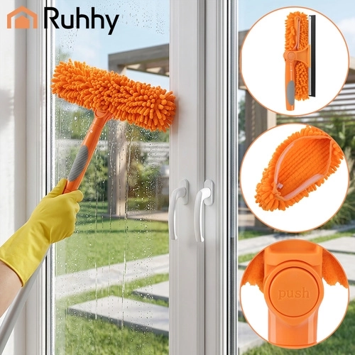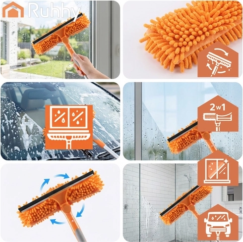 Myčka oken RUHHY 3v1 je univerzální pomocník pro domácnost, auto i terasu. Lehká teleskopická tyč z hliníku se prodlouží až na 1,8 m, takže bezpečně dosáhnete na horní hrany oken a velké prosklené plochy. Otáčecí kloub 180° vám umožní čistit svisle i vodorovně a snadno se dostat do rohů.