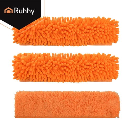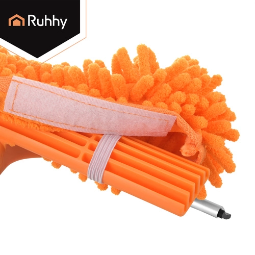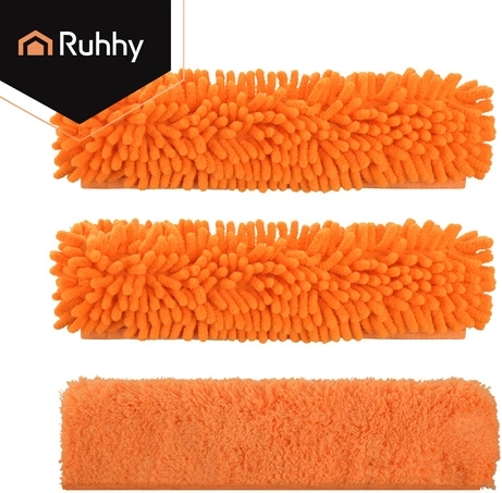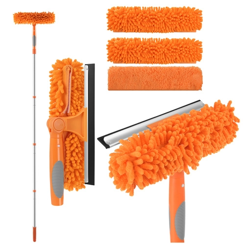 Oboustranná hlavice spojuje savé mikrovlákno pro mytí a gumovou stěrku pro rychlé stažení vody bez šmouh. Tři výměnné návleky (2× chenille, 1× hladký coral velvet) zlepší účinnost čištění podle typu nečistot a jsou pratelné a znovupoužitelné.