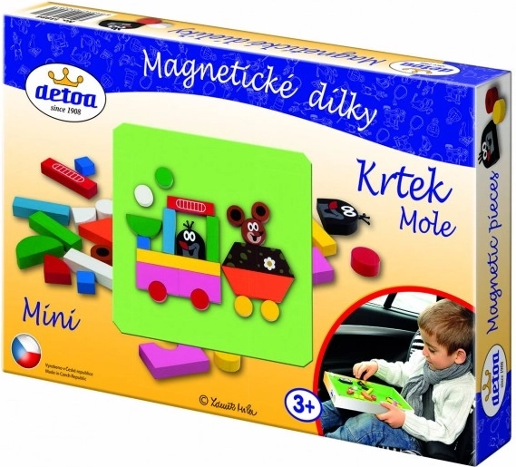 Objevte kouzlo klasické české hračky s magnetickými dílky Detoa na motivy oblíbeného Krtečka. Dřevěné prvky jsou podlepené magnetem, takže skvěle drží na magnetických tabulích, lednici či jiných kovových plochách. Sada je ideální pro volnou hru, skládání příběhů i první kreativní tvoření.