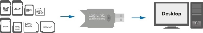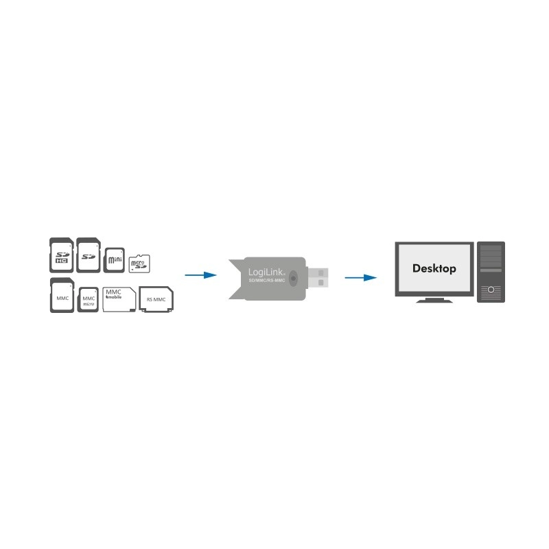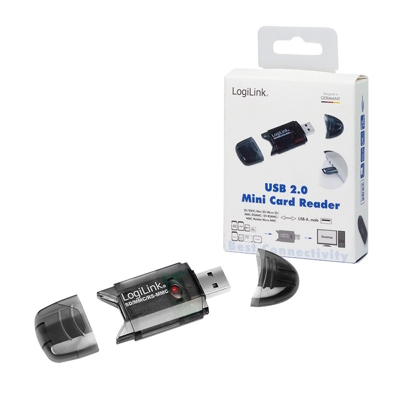 Stylová a přenosná čtečka karet LogiLink s rozhraním USB 2.0 přináší jednoduchý způsob, jak přenášet data ze zařízení na počítač. Podporuje běžné formáty karet SD/MMC/RS‑MMC a díky kompaktnímu tělu s ochrannými krytkami je připravena na každodenní použití doma i na cestách.