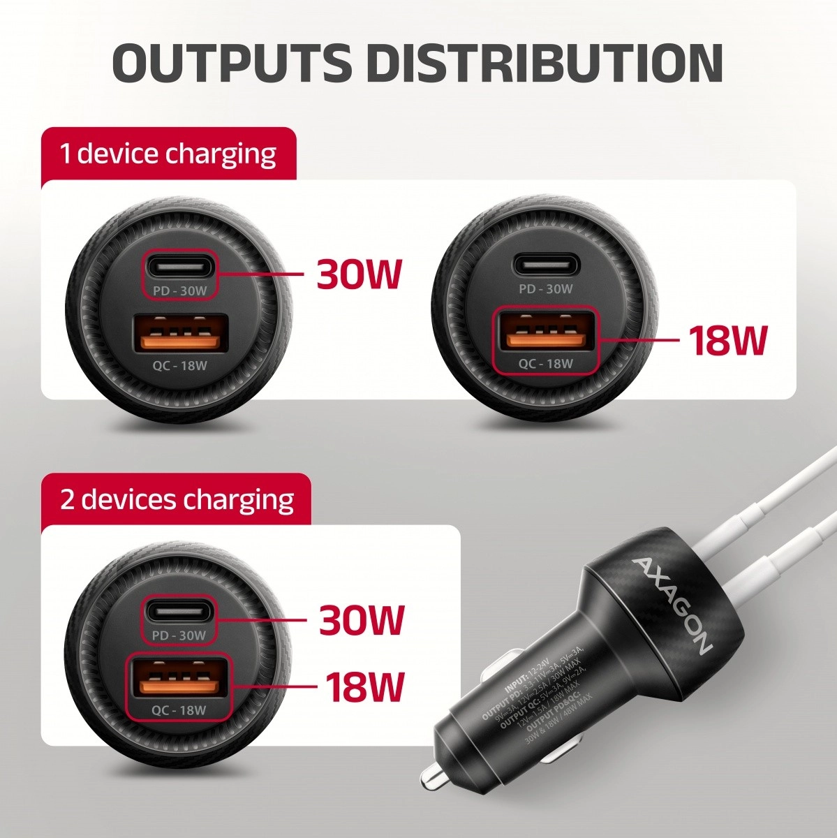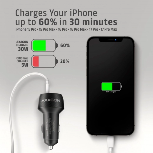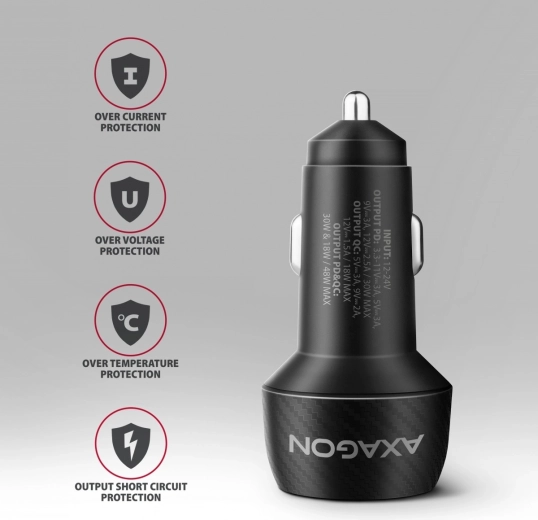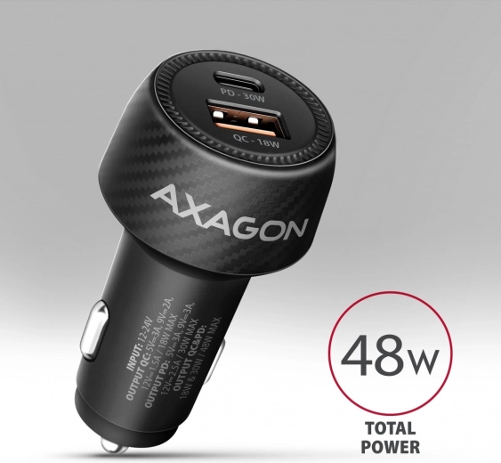 Užijte si rychlé a spolehlivé nabíjení na cestách. Autonabíječka AXAGON PWC-PQ48 kombinuje porty USB‑C PD 3.0 a USB‑A QC 4+ s celkovým výkonem 48 W, takže bez problémů dobije moderní smartphony, tablety i menší notebooky jako MacBook Air. Elegantní kompaktní tělo s nízkým profilem skvěle padne do 12/24V zásuvky a decentní LED dioda signalizuje provoz.