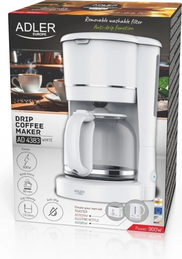 Užijte si vůni čerstvě připravené kávy s překapávacím kávovarem ADLER AD 4383 v elegantní bílé. Nabízí objem 1,5 l až pro 12 šálků, rovnoměrné překapávání pro plnou chuť, skleněnou konvici s ergonomickým uchem, funkci proti odkapávání, ukazatel hladiny vody a ohřejnou plotýnku s udržením teploty. Díky vyjímatelnému nylonovému filtru ušetříte za papírové filtry a automatické vypnutí se postará o bezpečnost a úsporu energie.