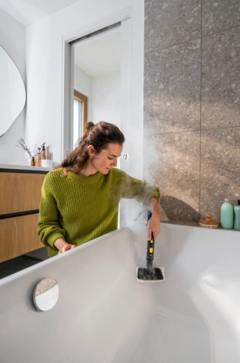 Ideální na křivky a rohy kolem baterií, dřezů a van. Pára proniká do spár a uvolňuje odolné nečistoty bez chemie.