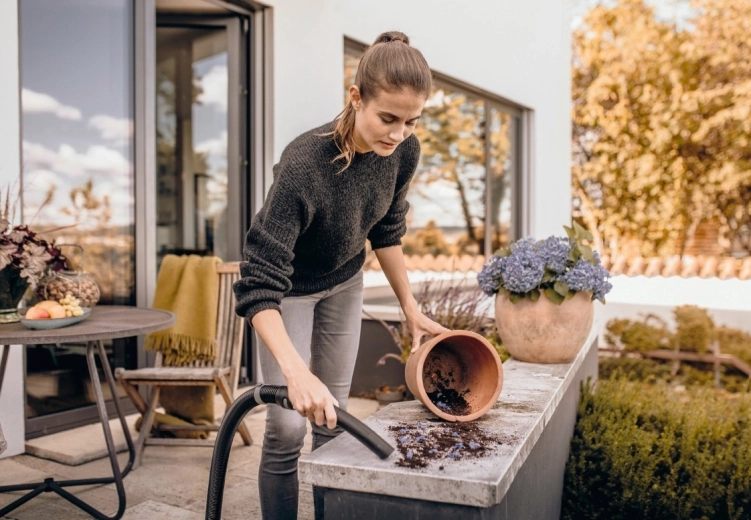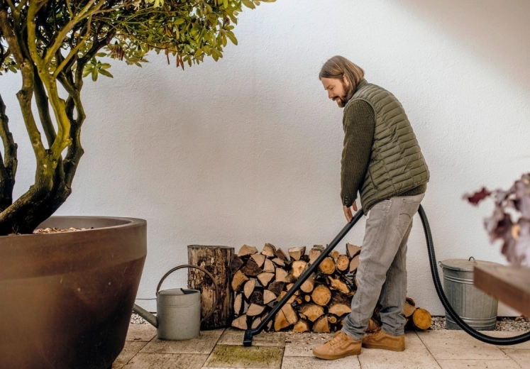 Tam, kde nelze vysát, jednoduše foukněte: odfoukne listí, prach a drobky z teras, cest a spár. Ideální pro rychlý úklid venkovních ploch.