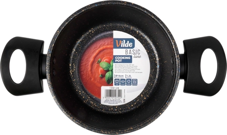 Kompaktní granitový hrnec z řady Basic Line o průměru 16 cm a objemu 1,2 l je ideální pro každodenní vaření, dušení i ohřívání. Odolná nepřilnavá granitová povrchová úprava umožňuje vařit s minimem tuku, pohodlné šířené rukojeti zajistí bezpečný úchop a snadnou manipulaci. Vhodné na plynové, elektrické a sklokeramické sporáky, lze mýt v myčce nádobí.
