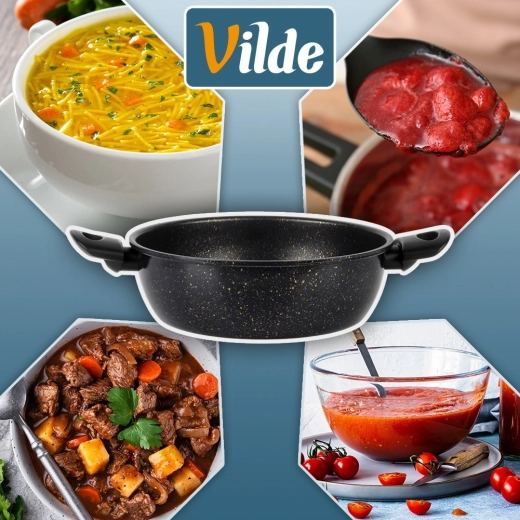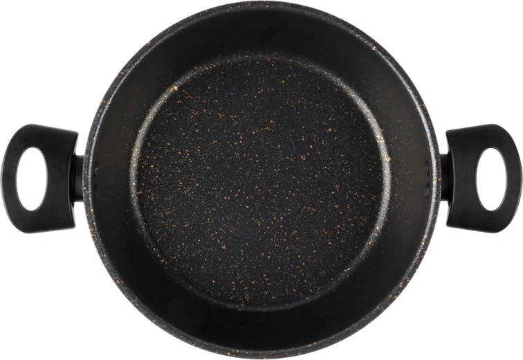 Oblíbený hrnec z řady BASIC LINE je vyroben z odolné uhlíkové oceli s nepřilnavou granitovou vrstvou. Široké tělo a stabilní dno zajišťují rovnoměrné rozložení tepla, takže se skvěle hodí na polévky, omáčky, zeleninu i každodenní rodinná jídla. Dva ergonomické boční úchyty usnadňují bezpečné přenášení.