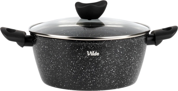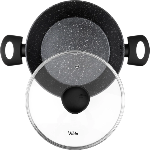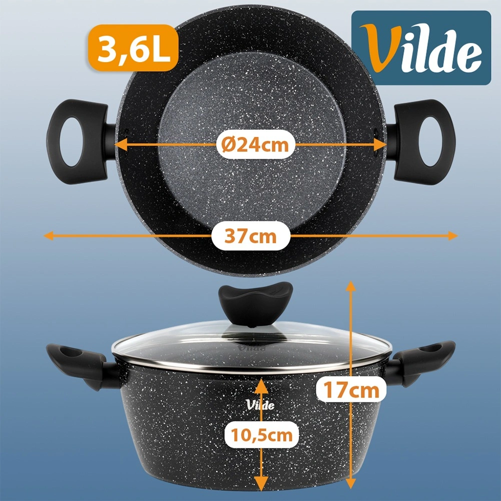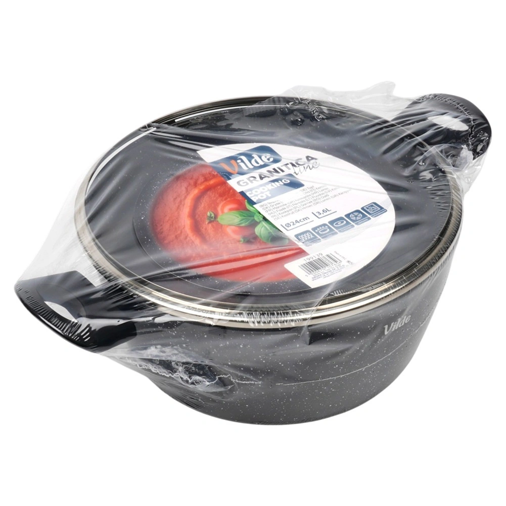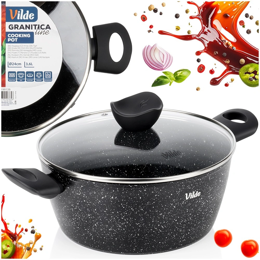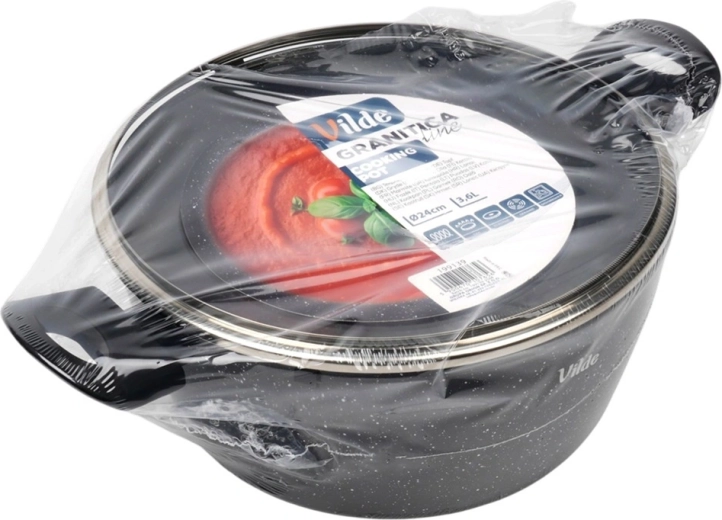 Praktický hrnec o objemu 3,6 l ze série VILDE GRANITICA kombinuje odolný hliníkový odlitek s nepřilnavým granitovým povrchem pro zdravé vaření s minimem tuku. Součástí je skleněná poklice s otvorem pro únik páry a pohodlné Soft Touch rukojeti. Vhodný na indukci, plyn, elektřinu i keramiku a lze mýt v myčce nádobí.