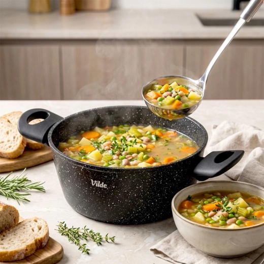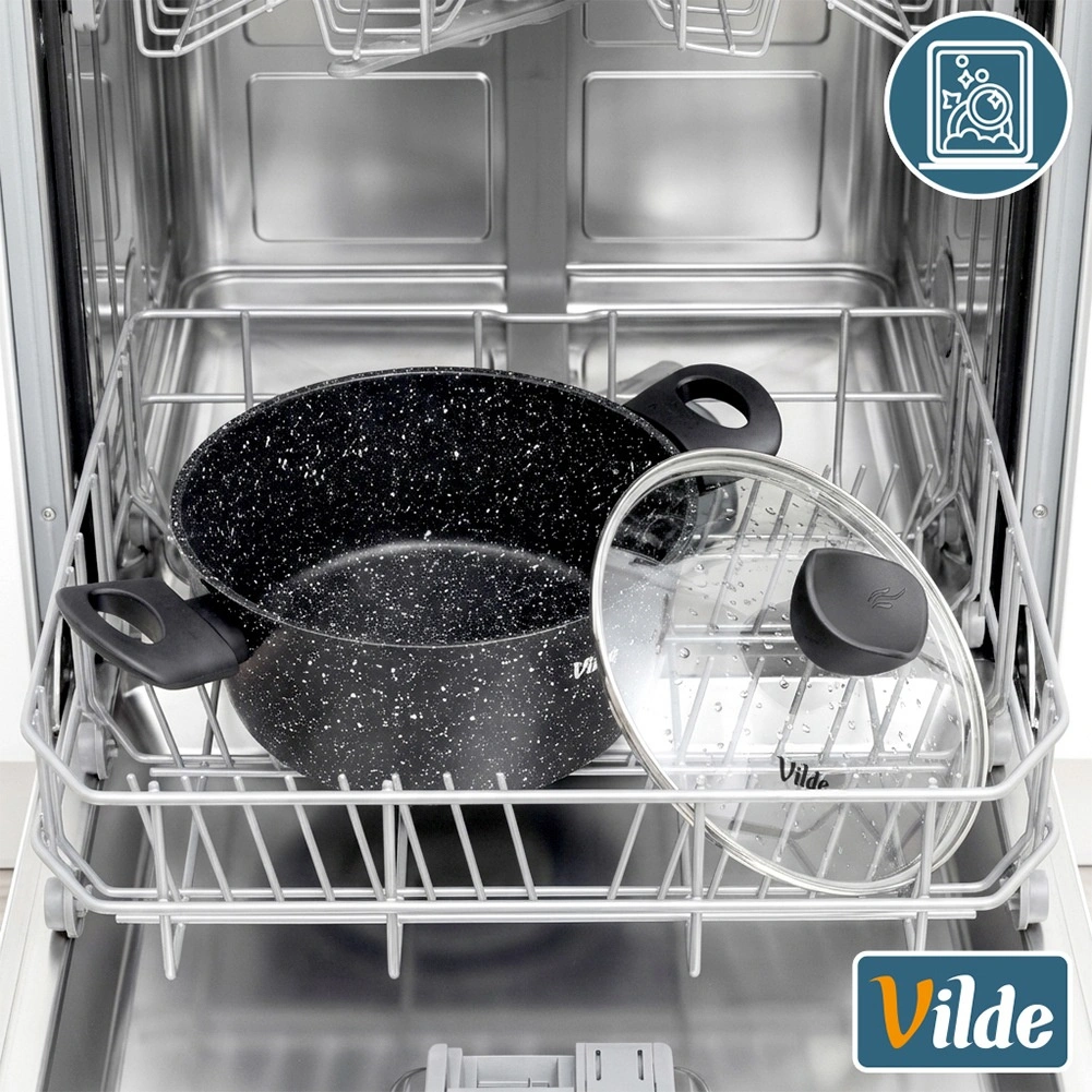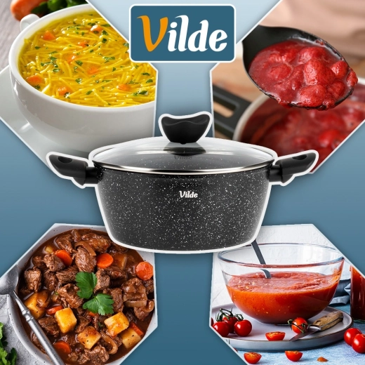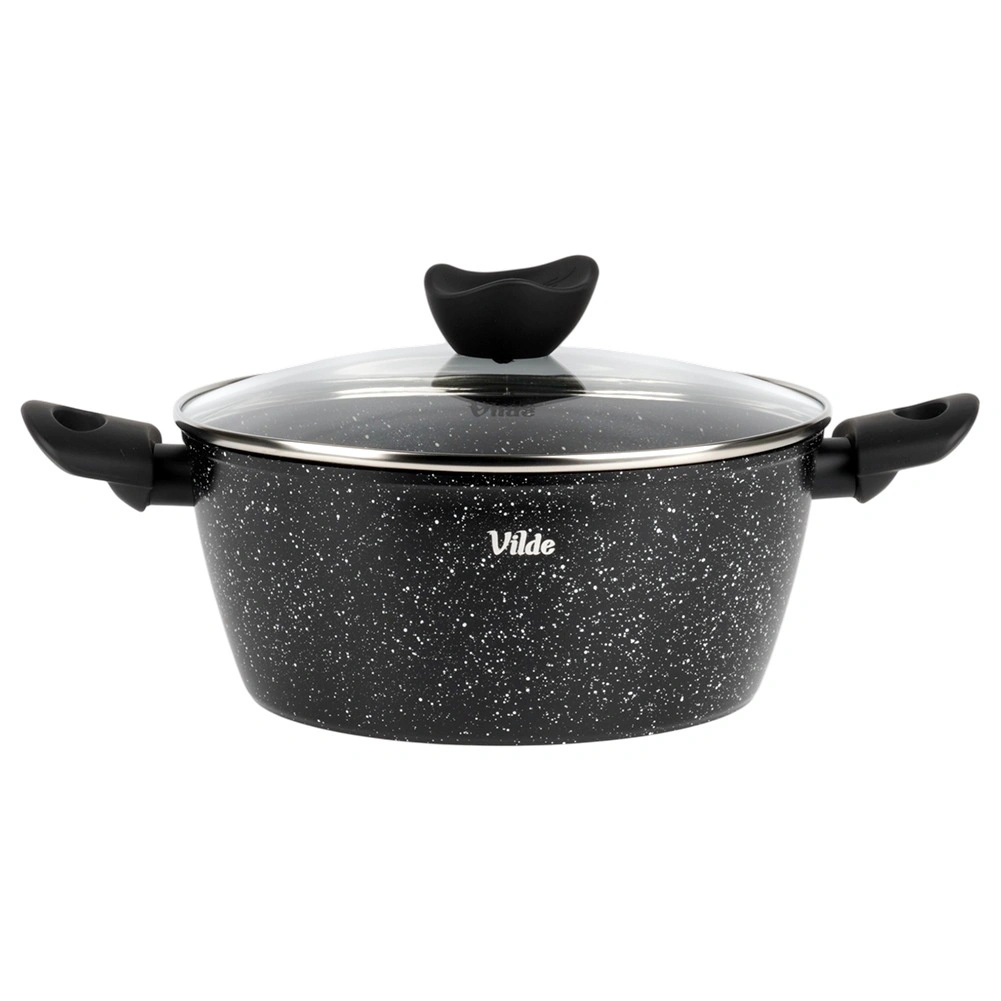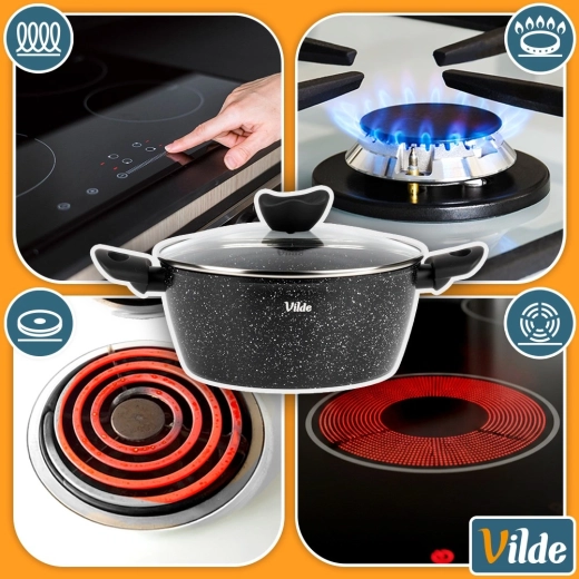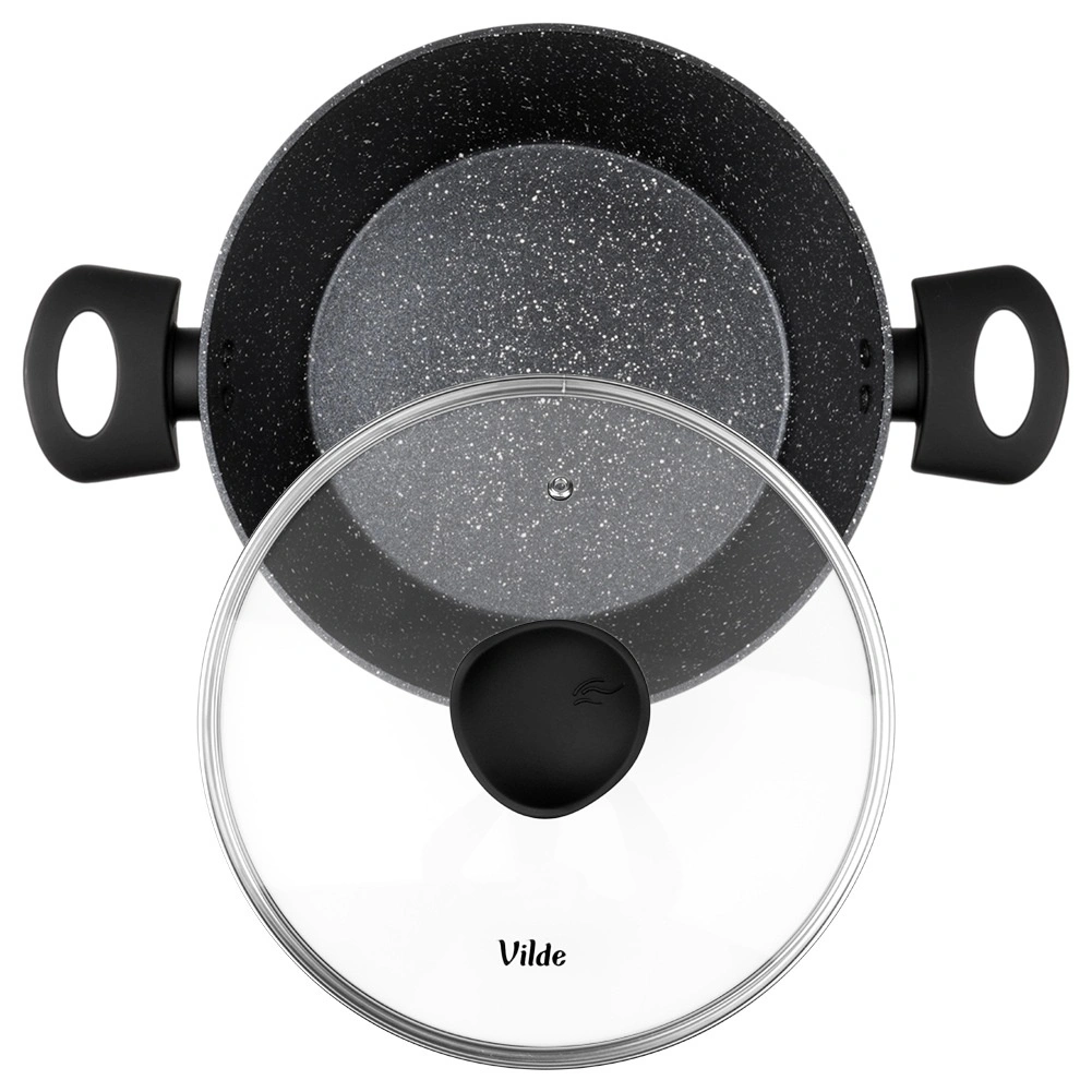 Praktický hrnec o objemu 3,6 l ze série VILDE GRANITICA kombinuje odolný hliníkový odlitek s nepřilnavým granitovým povrchem pro zdravé vaření s minimem tuku. Součástí je skleněná poklice s otvorem pro únik páry a pohodlné Soft Touch rukojeti. Vhodný na indukci, plyn, elektřinu i keramiku a lze mýt v myčce nádobí.