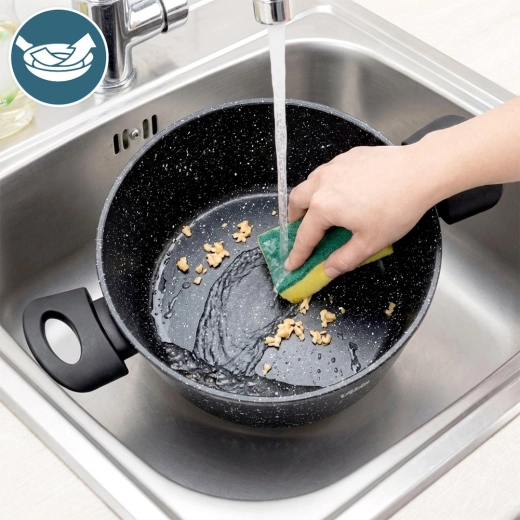 Elegantní granitový hrnec o průměru 24 cm a objemu 3,6 l je ideální pro každodenní vaření polévek, omáček i dušení. Třívrstvá nepřilnavá granitová vrstva zajišťuje rovnoměrné rozvod tepla a snadné uvolňování pokrmů bez připékání – pro chutné a zdravější vaření s minimem oleje.