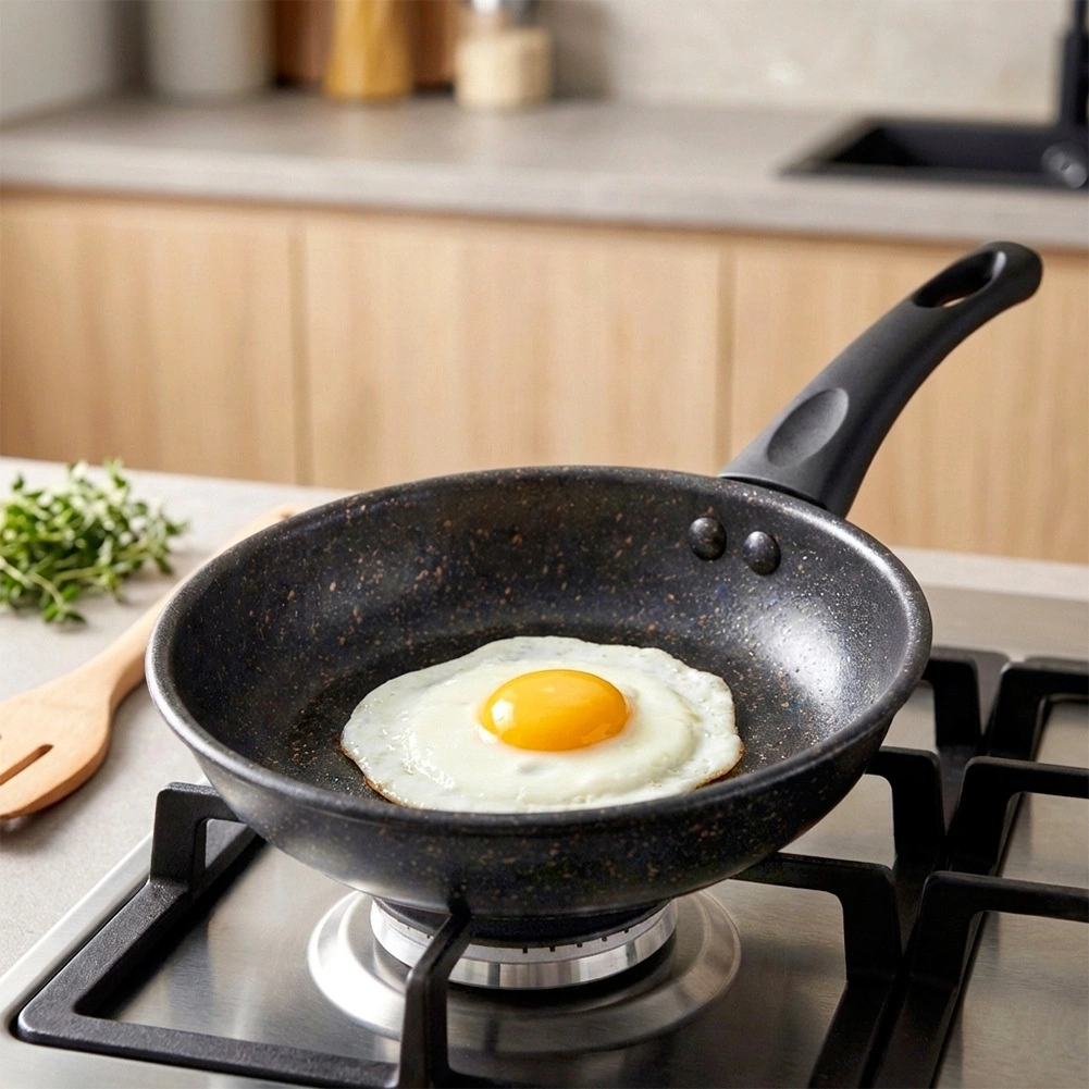 Granitová vrstva minimalizuje připalování a umožňuje smažit s menším množstvím tuku. Jídlo se snadno uvolňuje a pánev se rychle čistí – i v myčce.