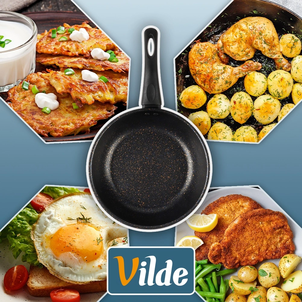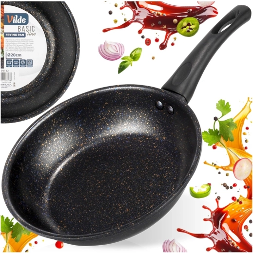 Stylová a odolná pánev o průměru 20 cm z kolekce VILDE Basic Line je ideální pro každodenní smažení a dušení. Nepřilnavý granitový povrch umožňuje vařit s minimem oleje, pokrmy se nepřipalují a pánev se snadno čistí — klidně i v myčce.