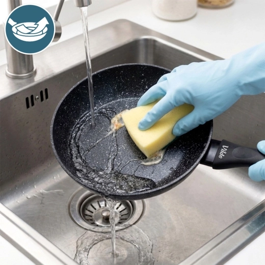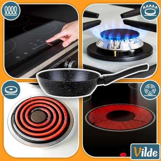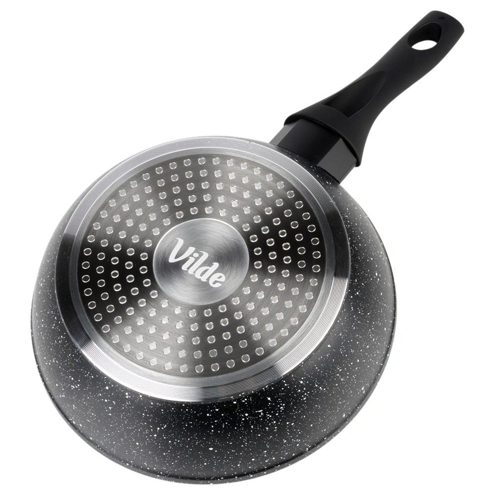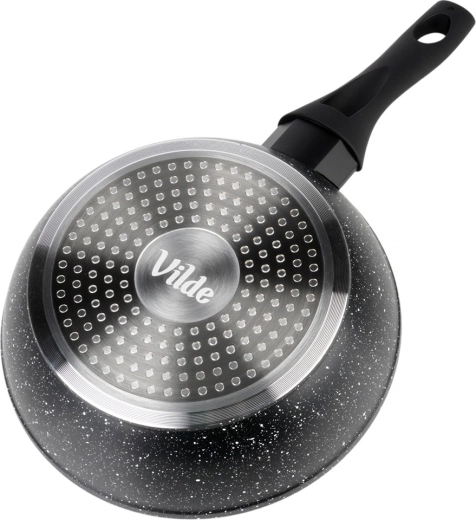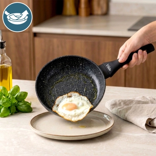 Silné dno zajišťuje rychlý a úsporný ohřev a rovnoměrné rozložení tepla. Ergonomická rukojeť s měkkým povrchem soft touch poskytuje bezpečný úchop a má praktický otvor pro zavěšení. Pánev je kompatibilní se všemi typy varných desek – indukční, plynovou, elektrickou i sklokeramickou a lze ji mýt v myčce.
