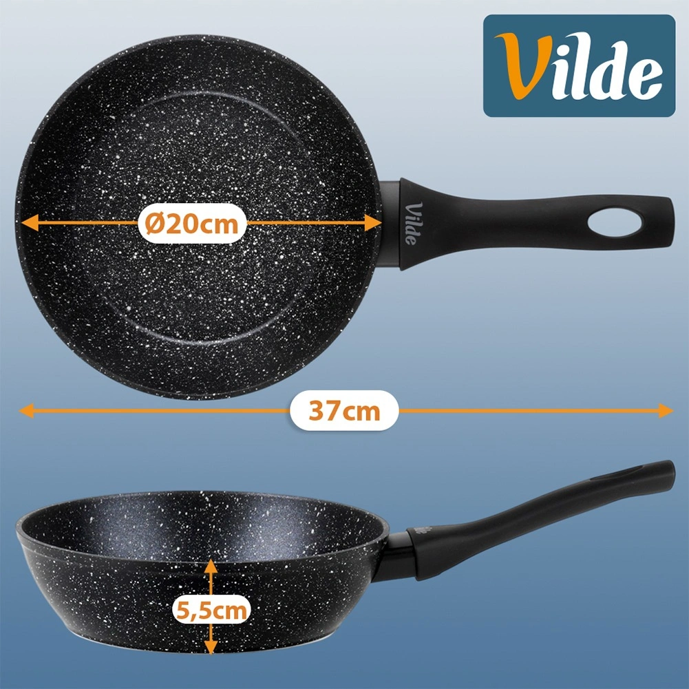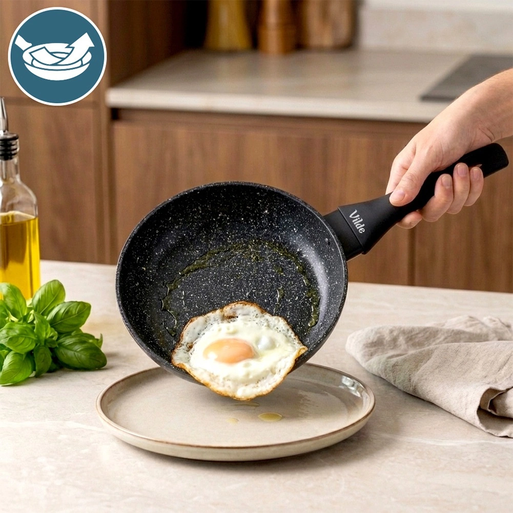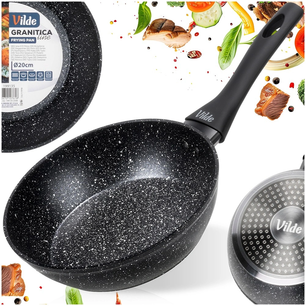 Stylová a odolná pánev z linie Granitica je vyrobena z hliníkového odlitku s nepřilnavou žulovou (granitovou) povrchovou úpravou, která umožňuje vařit s minimem tuku a usnadňuje čištění. Díky kompaktním rozměrům 20 cm je ideální pro vejce, zeleninu, menší porce masa i rychlé ohřívání.