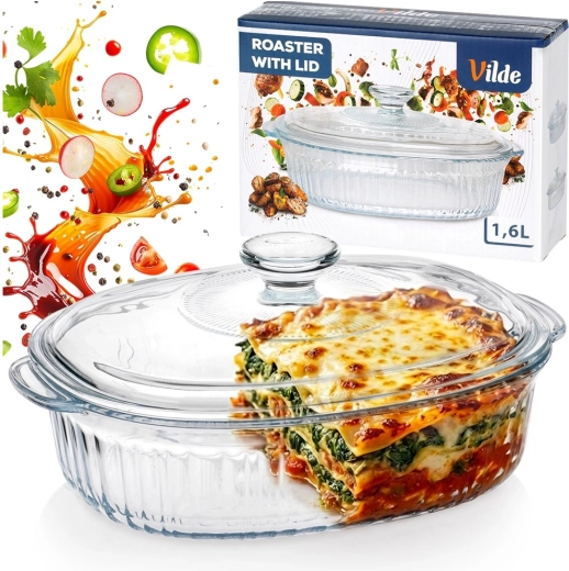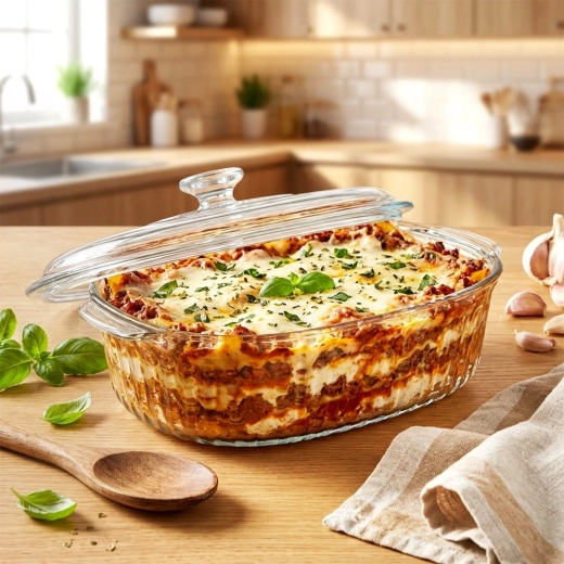 Přiléhavé skleněné víko s praktickým knobem udržuje vlhkost, teplo a aroma – ideální pro lasagne a zapékané speciality.