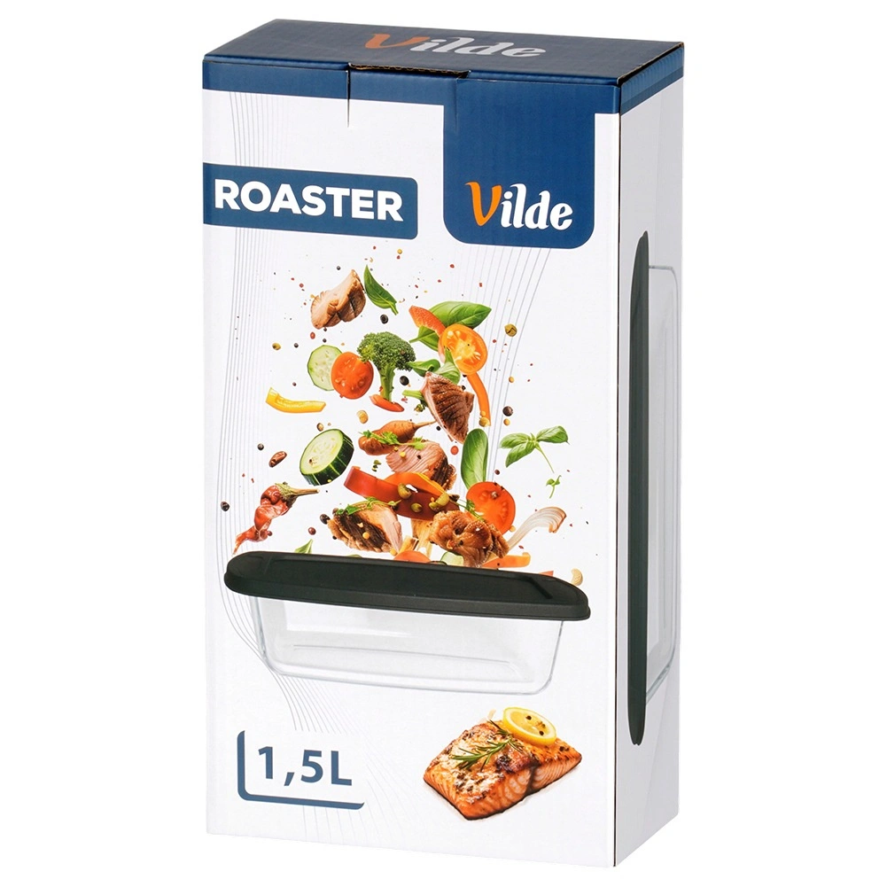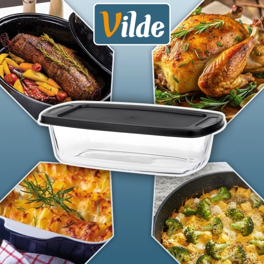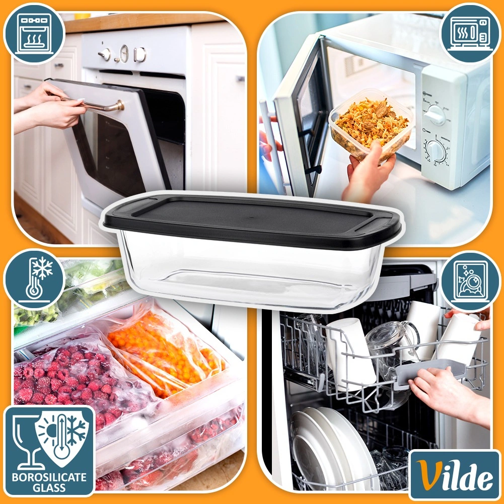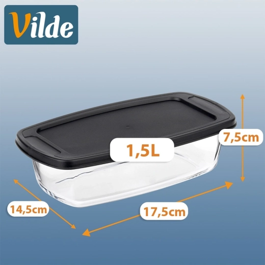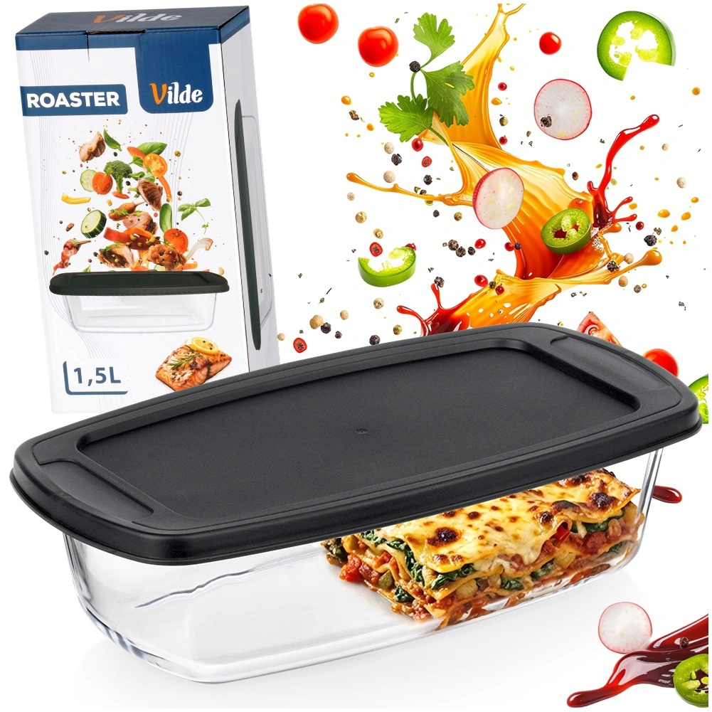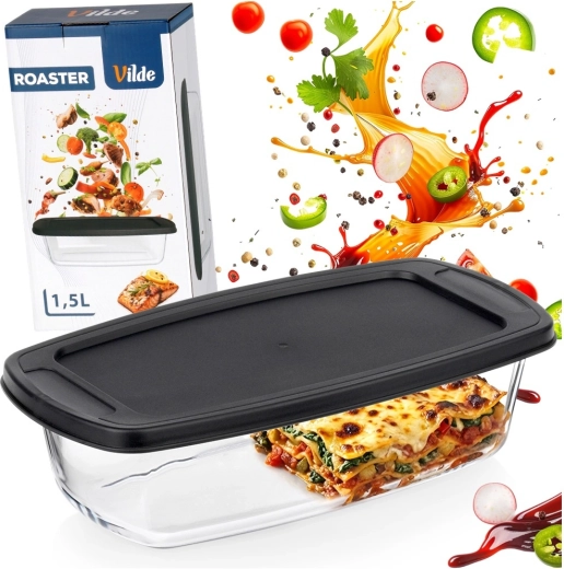 Univerzální skleněná mísa o objemu 1,5 l s praktickým černým víkem je ideální pro pečení, zapékání a skladování jídel. Odolné borosilikátové sklo snese teploty od -30 °C do +400 °C (víko od -18 °C do 120 °C), takže je skvělé do trouby, mikrovlnky, lednice i mrazáku. Integrované úchyty usnadňují manipulaci a těsnící víko pomáhá udržet jídlo déle čerstvé.