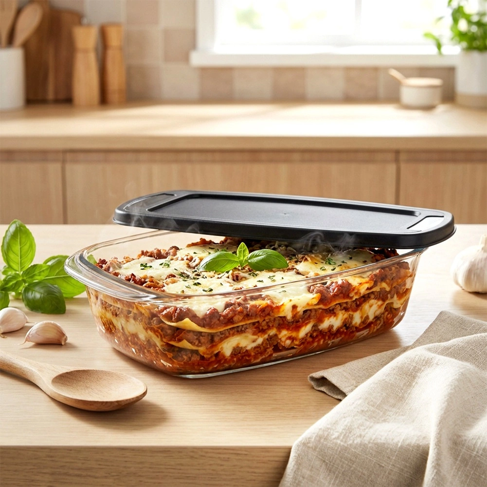 Hodí se na lasagne, zapékané brambory, maso, zeleninu, ale také na pečení chleba, biskupského chlebíčku či paštiky. Víko chrání jídlo před vysycháním a umožní bezpečné přenášení i skladování bez rozlití.
