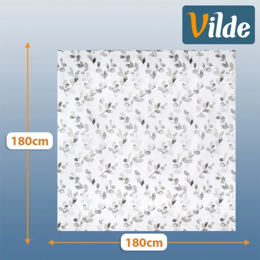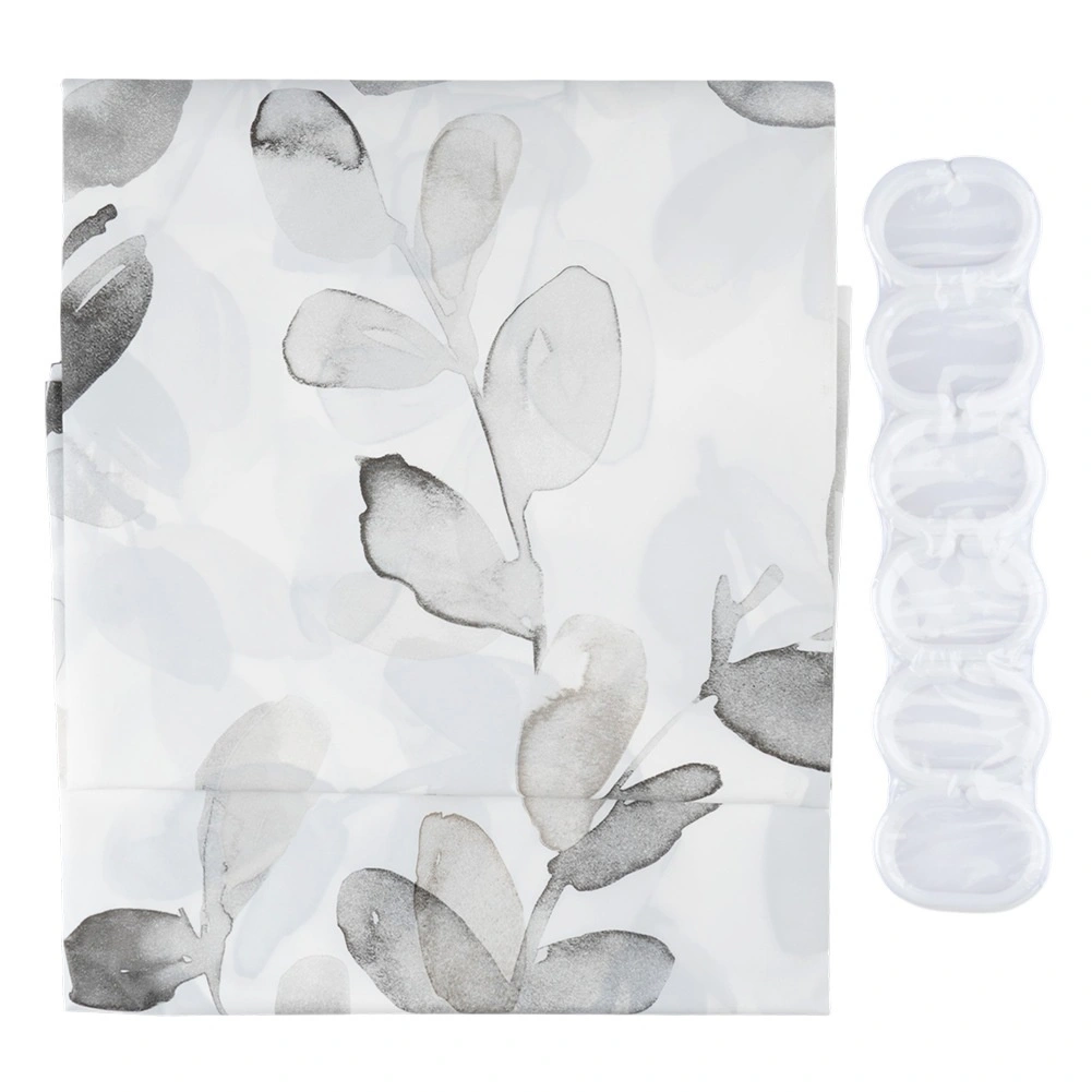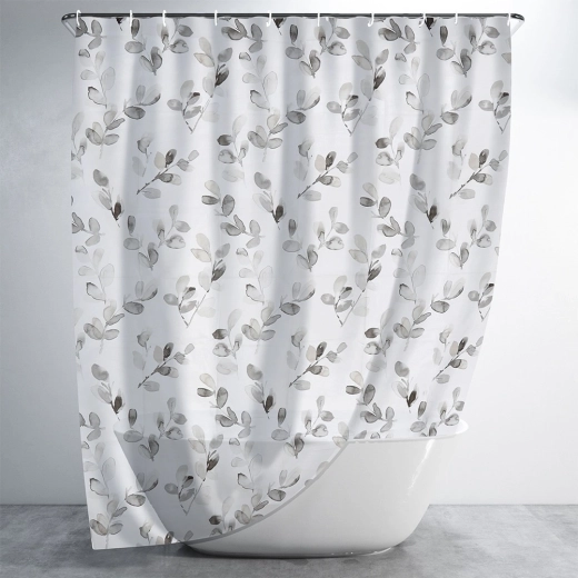 Vneste do koupelny klidnou, přírodní atmosféru. Bílý závěs s šedo‑šedými listy spojuje moderní design a praktickou ochranu proti vodě. Díky materiálu PEVA je voděodolný, snadno omyvatelný a šetrný k životnímu prostředí.