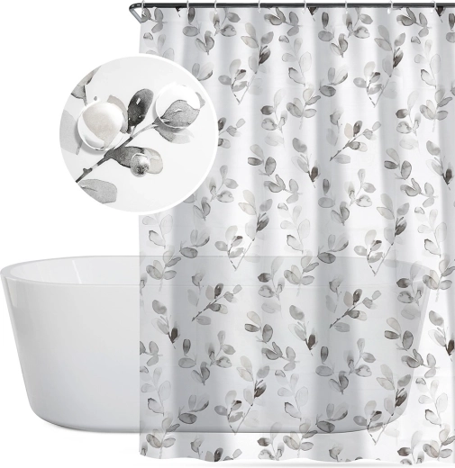 Elegantní sprchový závěs o rozměru 180 × 180 cm s jemným rostlinným motivem a 12 háčky v balení zajistí soukromí a ochranu proti stříkající vodě. Vyroben z ekologického PEVA, je bez škodlivých látek, lehký, snadno se udržuje a hodí se do většiny van a sprchových koutů.