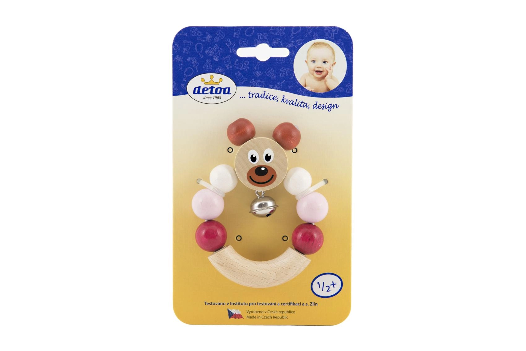 Detoa chrastítko medvěd v růžové barvě je ideální první hračka pro rozvoj sluchu, hmatu a motoriky. Jemný zvuk rolničky miminko zaujme, příjemné materiály a tvar podporují bezpečné a pohodlné uchopení.
