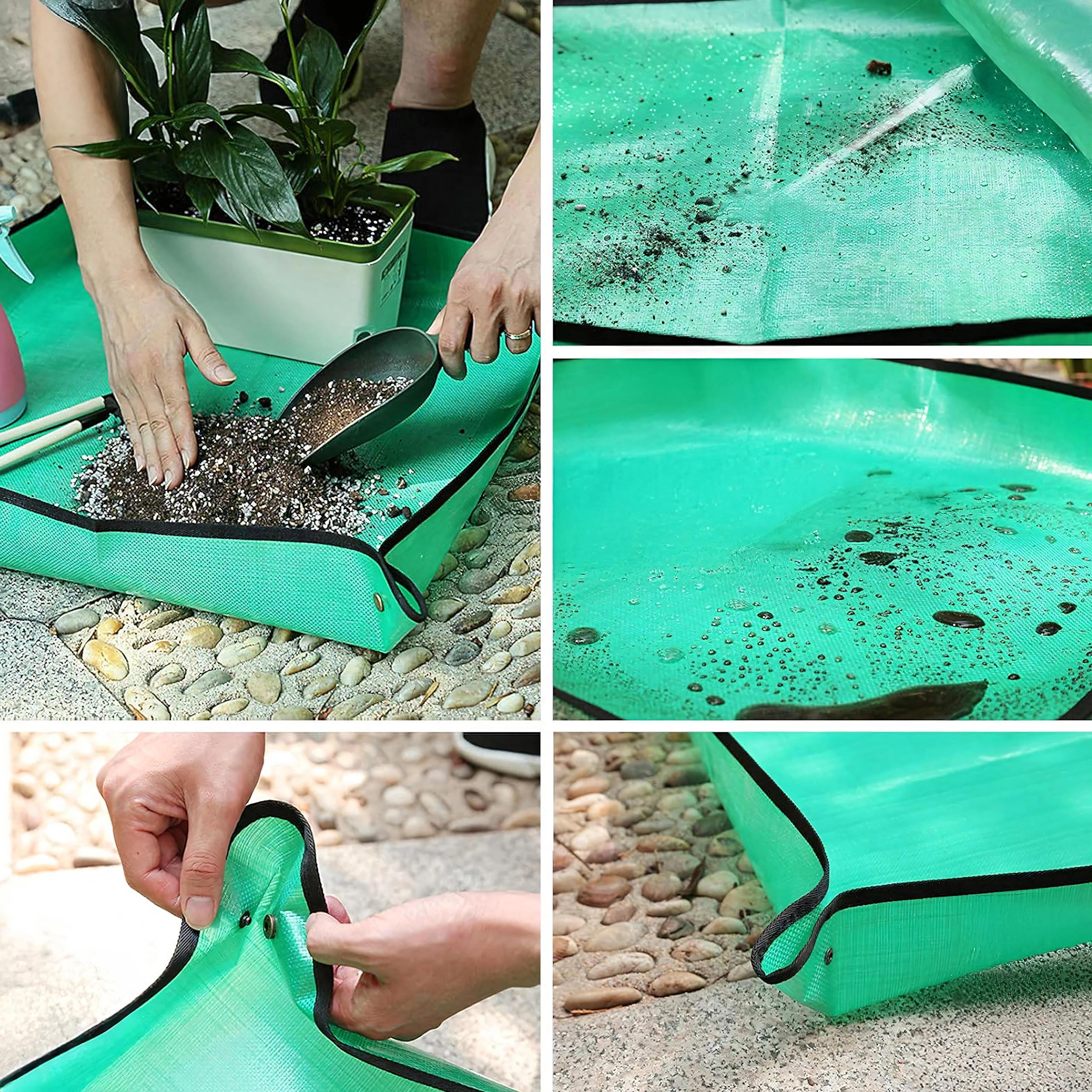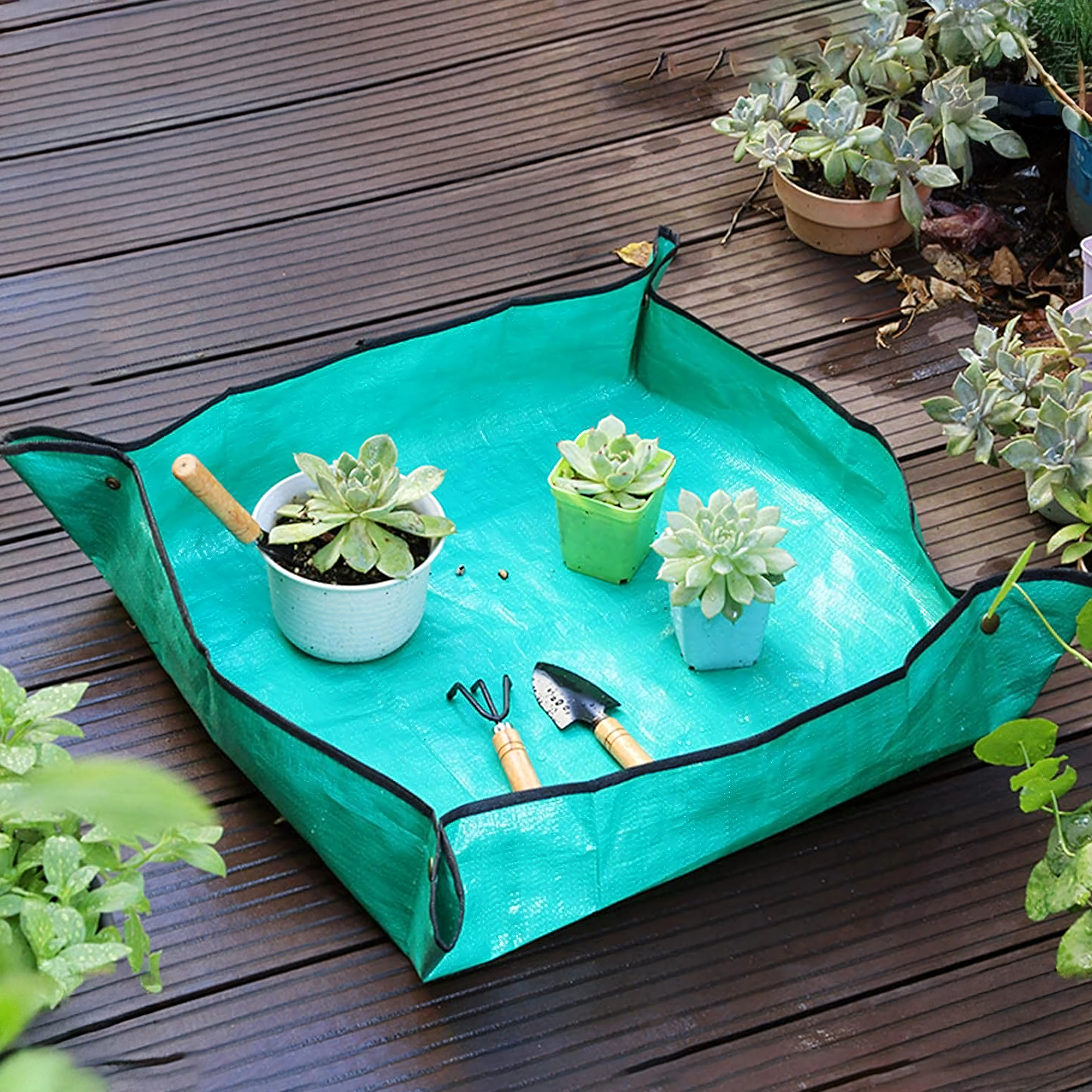Udržte svůj domov i balkon čistý při péči o rostliny díky praktické podložce na přesazování o rozměru 68 × 68 cm. Díky zacvakávacím rohům vytváří zvýšené okraje, které zachytí hlínu a vodu, a voděodolný, snadno omyvatelný povrch usnadní úklid. Podložka je skládací a lehká, ideální pro přesazování, míchání substrátu i práci se sukulenty uvnitř i venku.