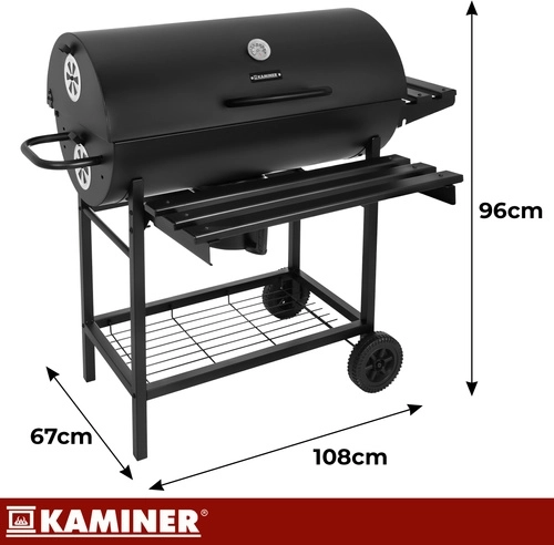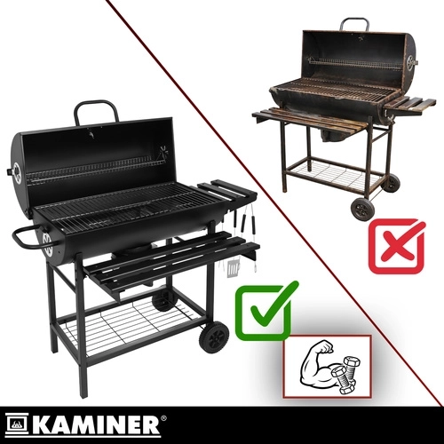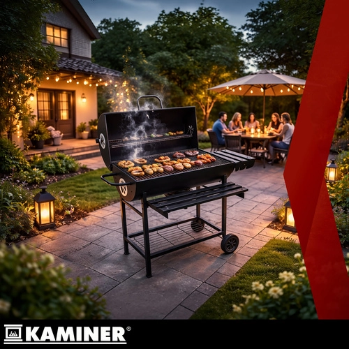 Užijte si pohodlné grilování s modelem KAMINER, který kombinuje pevnou ocelovou konstrukci (1 mm) s chytrými detaily pro snadné ovládání žáru. Víko s termometrem a nastavitelnými průduchy udrží rovnoměrnou teplotu bez nutnosti častého zvedání víka. Díky dvěma roštům připravíte hlavní chod i přílohy současně a vše udržíte teplé.