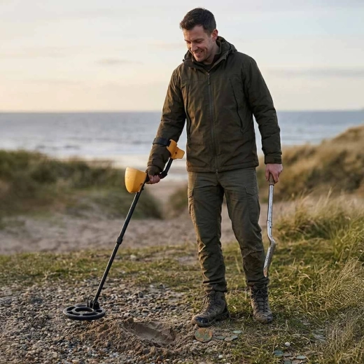Univerzální detektor kovů s podsvíceným LCD displejem, automatickou identifikací cílů a voděodolnou cívkou pro hledání v terénu i v mělké vodě. Nabízí eliminaci nežádoucích kovů, nastavitelnou citlivost, tónovou signalizaci a ergonomickou opěrku předloktí pro pohodlné a přesné pátrání.