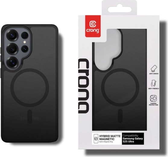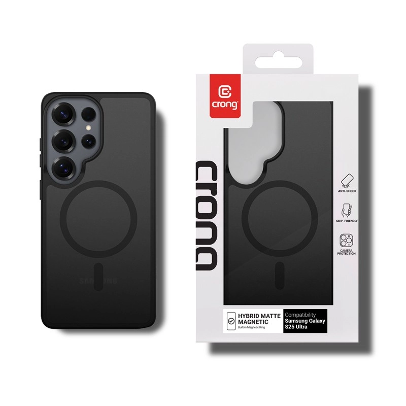 Elegantní a odolné pouzdro Crong Hybrid Matte Magnetic pro Samsung Galaxy S25 Ultra kombinuje maximální ochranu, matný anti‑fingerprint povrch a plnou kompatibilitu s MagSafe. Díky 30 silným magnetům N52 a magnetu pro přesné posazení drží pevně na bezdrátových nabíječkách, držácích i powerbankách. Zesílené rohy, zvýšené hrany displeje a fotoaparátu a integrovaná tlačítka zajišťují bezpečí i pohodlné ovládání každý den.