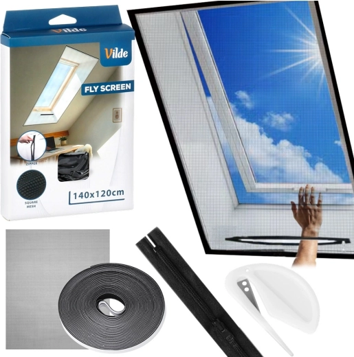 Síť je vyrobena z odolného polyesteru v elegantní černé barvě a dodává se v rozměru 140 × 120 cm. Lze ji jednoduše zastřihnout na míru vašemu oknu, takže se hodí pro většinu střešních oken na půdách a v podkrovních pokojích.