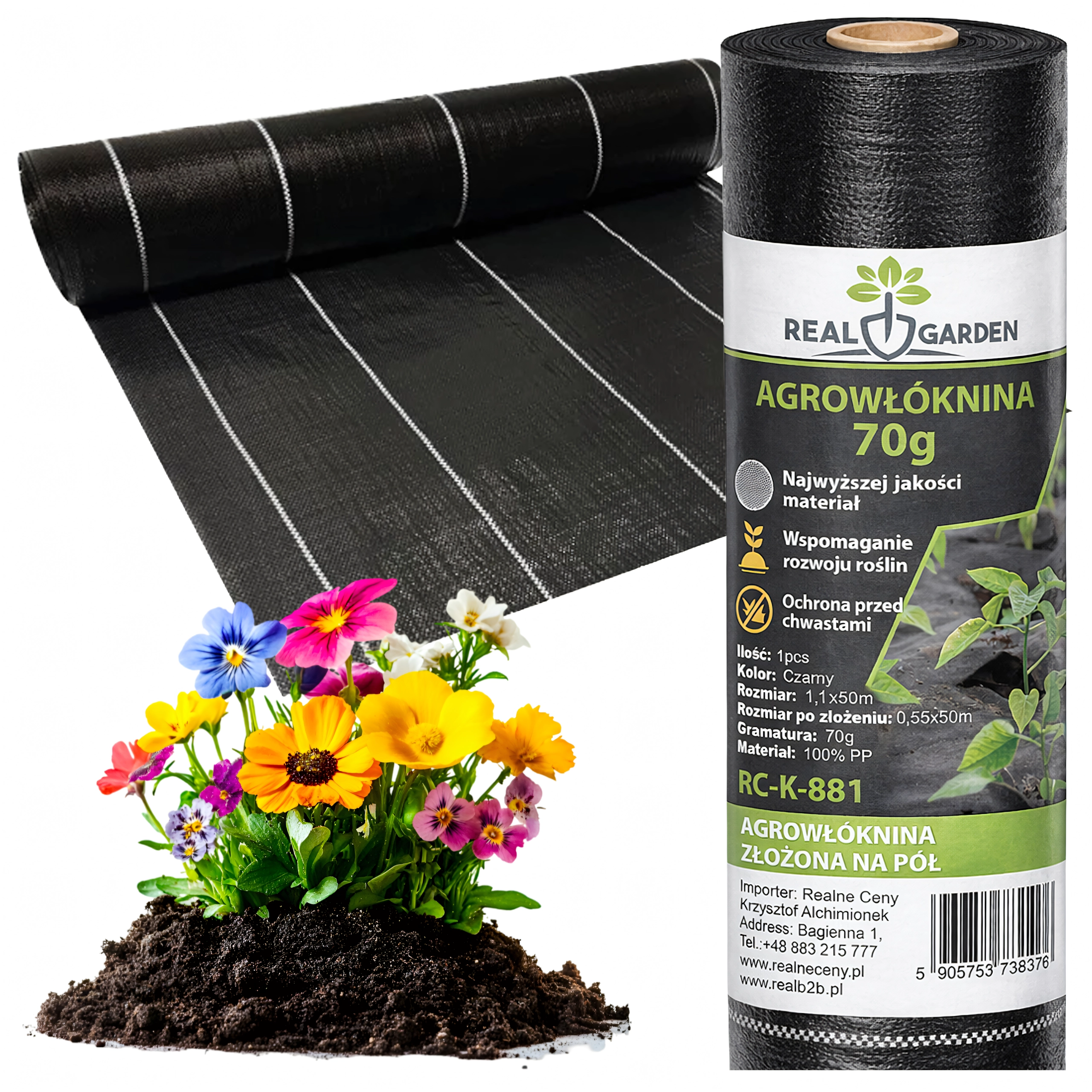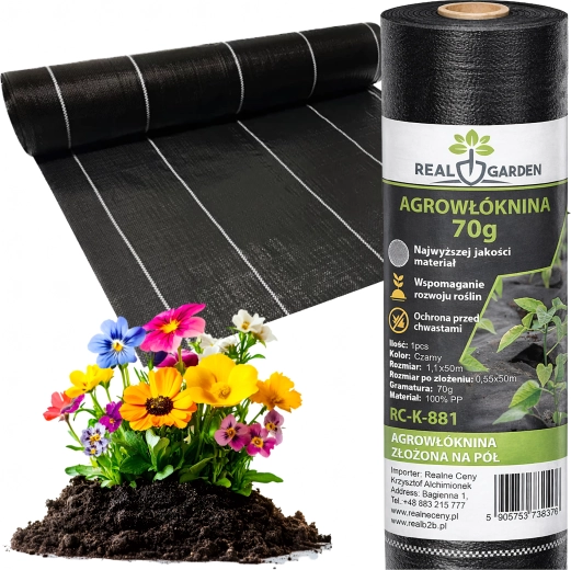 Role je dodávána přeložená na polovinu pro snazší manipulaci (šířka složené role 55 cm, po rozložení 110 cm). Materiál je UV stabilizovaný pro dlouhou životnost na slunci a odolný proti protržení. Vhodné pod mulčovací kůru, dekorativní kameny i jako podklad pro pěstební nádoby.