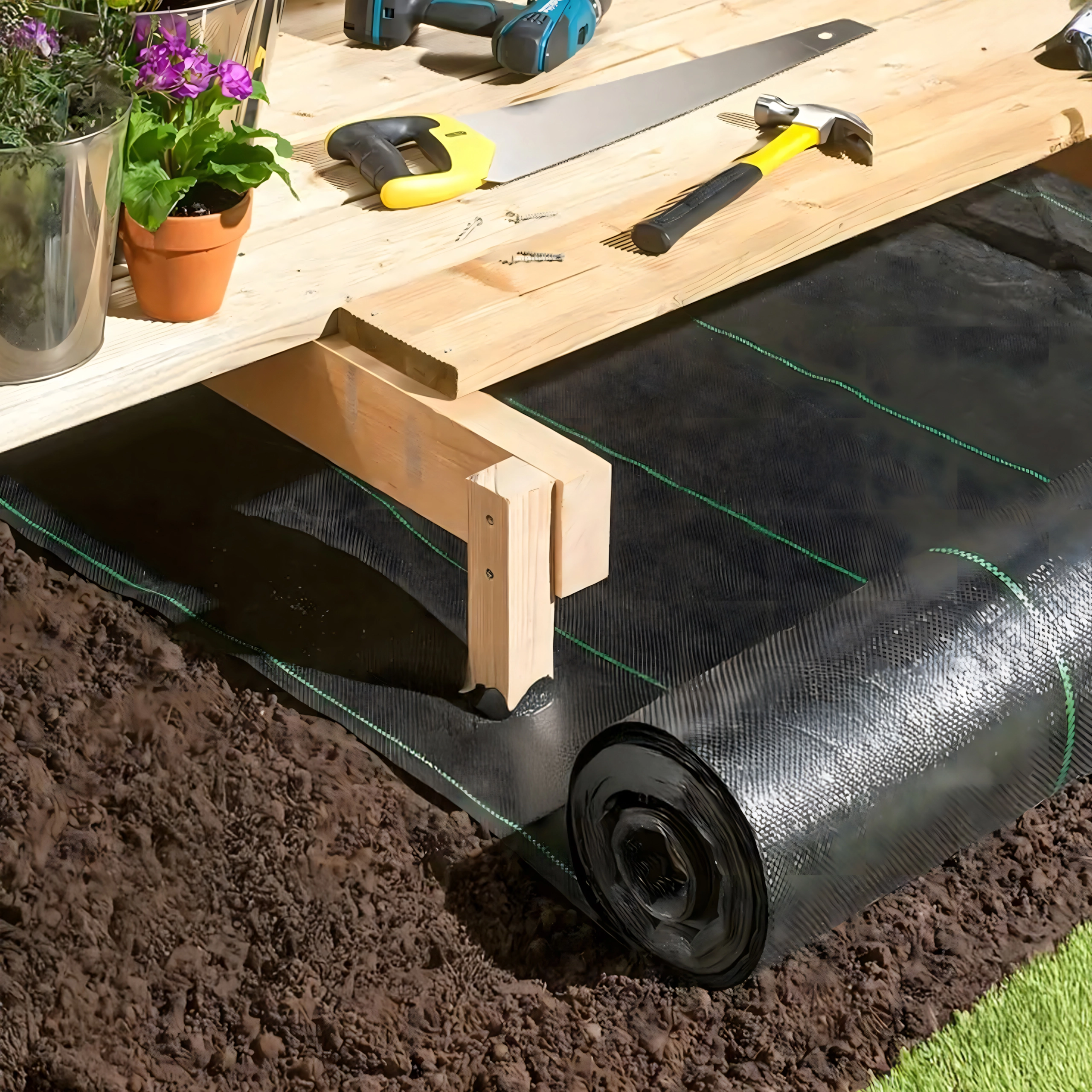 Hustě tkaná struktura omezuje přístup světla k plevelům, takže záhony zůstávají čisté a upravené bez nutnosti častého pletí.