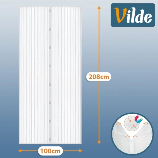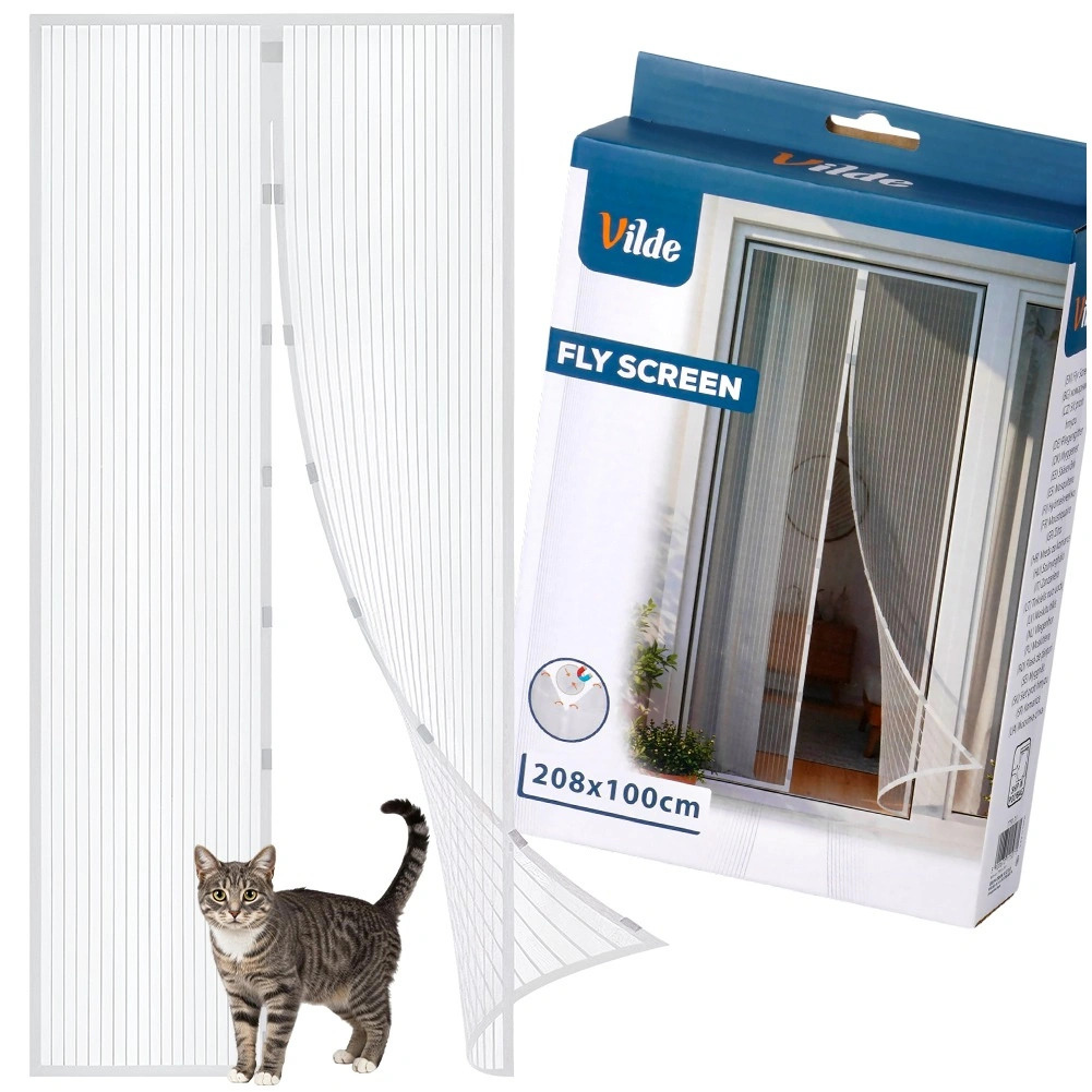 Praktická dveřní moskytiéra o rozměru 208 × 100 cm v bílé barvě spolehlivě chrání váš domov před hmyzem, zatímco propouští světlo i vzduch. Díky magnetickému zavírání se sama spojí po průchodu, snadno se montuje na rám dveří pomocí suchého zipu nebo připínáčků a lze ji přizpůsobit zastřižením na potřebnou velikost. Odolná polyesterová síť neomezuje výhled a je ideální pro balkonové i terasové dveře.