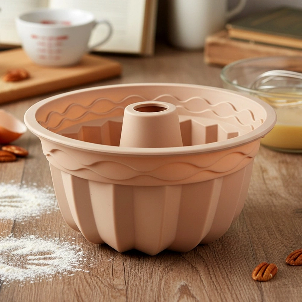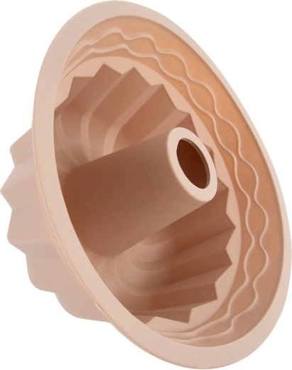 S touto béžovou silikonovou formou na bábovku připravíte dokonale propečené dezerty s elegantními reliéfními drážkami. Flexibilní silikon usnadňuje vyjmutí bez nutnosti vymazávání tukem či vysypávání moukou a zajišťuje čisté tvary bez trhání.