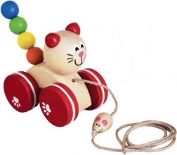 Tato dětská tahací hračka ve tvaru kočky zaujme každé malé dítě, které už objevuje svět prvních krůčků. S kočkou se na provázku zábavně projíždí myška, což dodává další rozměr zábavy.
