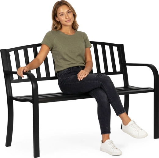 Klasický parkový design a univerzální černá barva se hodí na zahradu, terasu i balkon a snadno se kombinují s dalším nábytkem.