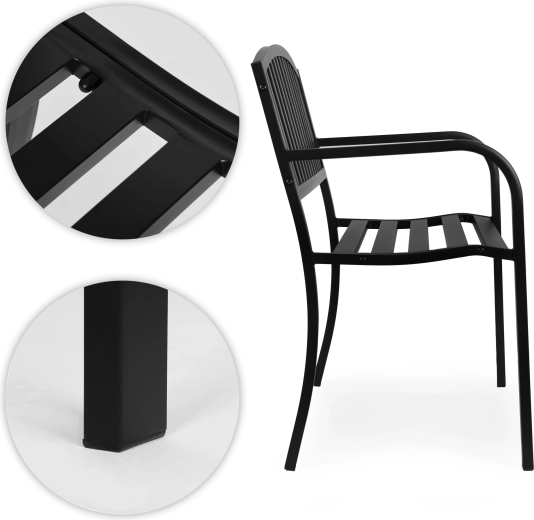 Promyšlená konstrukce s ergonomickou opěrkou poskytuje příjemnou oporu zad, zatímco protiskluzové koncovky nohou zvyšují stabilitu a chrání podlahu před poškozením. Univerzální černé provedení se snadno kombinuje s ostatním zahradním nábytkem a vytváří harmonický celek v tradičních i moderních aranžmá.