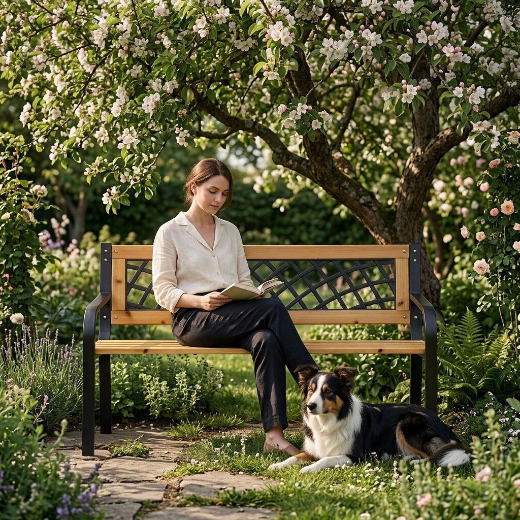 Užijte si pohodlí a eleganci na čerstvém vzduchu. Tato zahradní lavice v parkovém stylu se skvěle hodí k posezení u kávy, ke čtení knihy nebo k odpočinku s rodinou. Nadčasový design s jemným mřížkovým vzorem snadno zapadne do tradičních i moderních aranžmá.