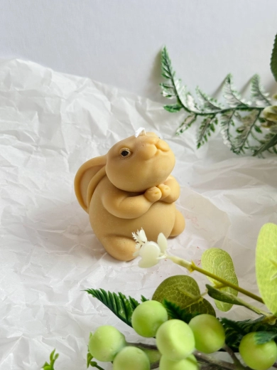 Roztomilá ručně vyráběná svíčka ze sojového vosku ve tvaru zajíce potěší jako dekorace i milý dárek. Nabízí čisté a dlouhé hoření po 7–9 hodin a díky sojovému vosku hoří rovnoměrně s minimem kouře.