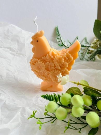 Roztomilá ručně vyráběná svíčka ze 100% sójového vosku ve tvaru slepičky potěší jako dekorace i milý dárek. Nabízí čisté hoření bez sazí, dlouhou výdrž 7–9 hodin a jemný, přírodní vzhled pro zútulnění každého interiéru.
