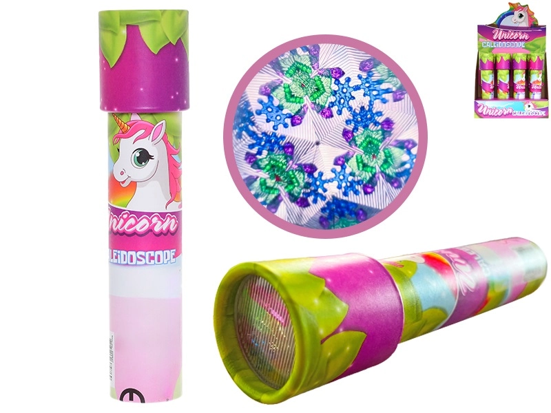 Objevte kouzlo fantazie s tímto roztomilým kaleidoskopem s motivem jednorožce. Stačí se podívat skrz objektiv a otáčet tubusem – před očima se objeví neustále se měnící barevné obrazce. Díky kompaktním rozměrům a odolnému plastovému provedení se skvěle drží i malým dětským rukám. Vhodné pro děti od 3 let, k dispozici ve čtyřech barevných variantách.
