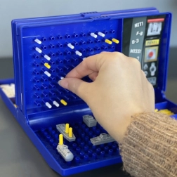 Skládací kufříkový panel se uzavírá, takže všechny kolíčky i lodě zůstanou pohromadě. Díky kompaktním rozměrům se hra vejde do batohu či kufru a je ideální na dovolenou, víkend či cestu vlakem.
