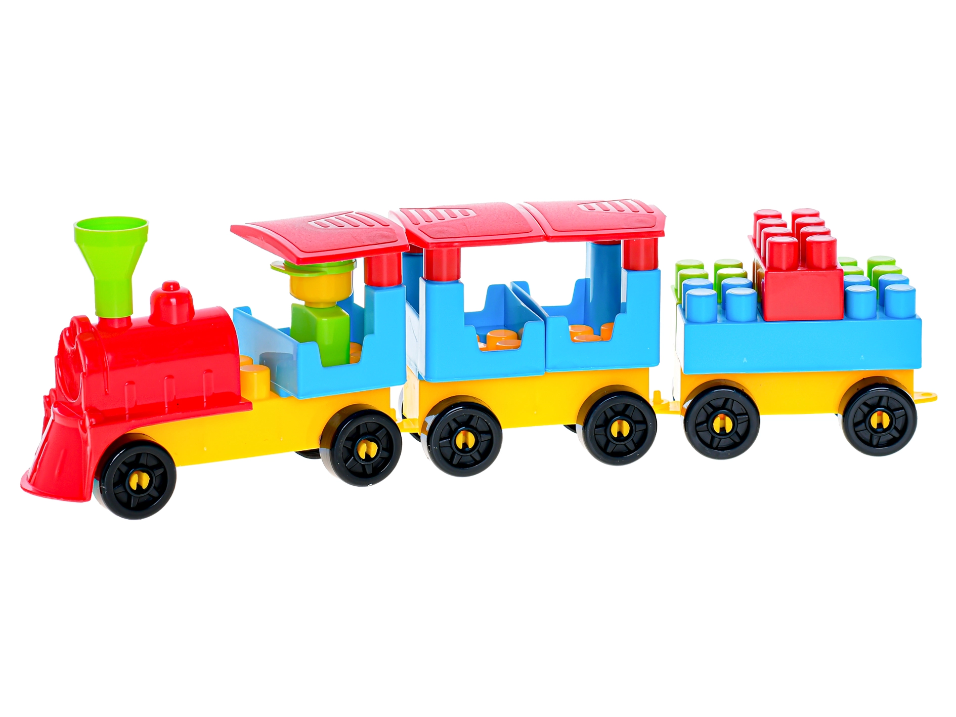 Stavebnice je vyrobena z odolného a bezpečného plastu, příjemného do malých dětských rukou. Sestavený vláček o délce cca 34 cm je ideální pro volnou hru na rovném povrchu. Sada je vhodná pro děti od 3 let a podporuje koordinaci oko–ruka, trpělivost a prostorovou představivost.