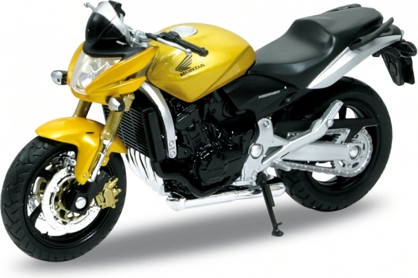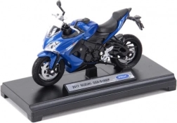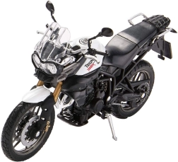 Model kombinuje kov a plastové doplňky, má odpruženou zadní vidlici a realisticky tvarované prvky – od světlometů až po výfukový systém. Je ideální jako sběratelský kousek, stylový dárek nebo interiérový doplněk.