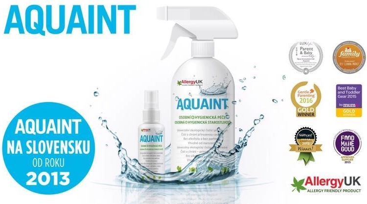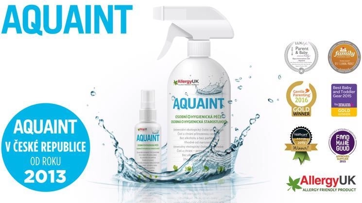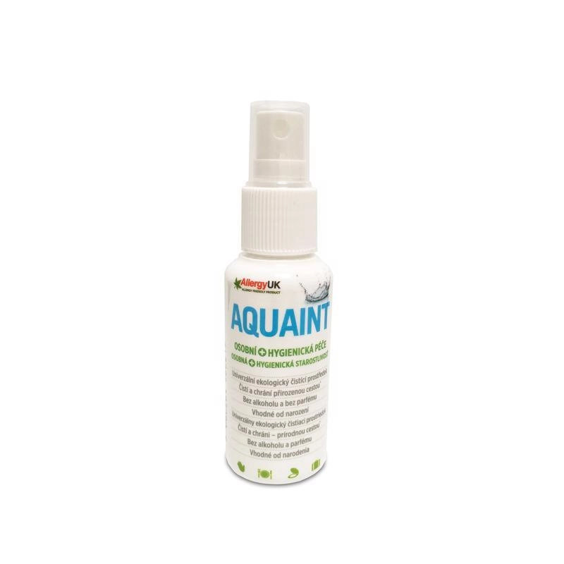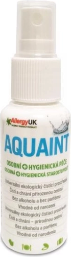 Aquaint je 100% přírodní čisticí voda v praktickém mechanickém rozprašovači, která bezpečně čistí ruce, pokožku i citlivé partie od narození. Je bez zápachu i chuti, nelepí a po použití zanechá na povrchu jen čistou vodu. Vhodná pro každodenní hygienu doma, na cestách i venku.