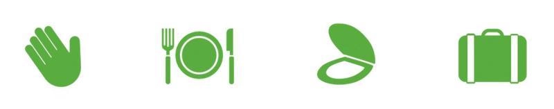 - Ruce, pokožka, ústa; před/po jídle, po toaletě, na cestách