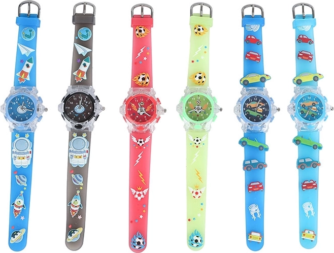 Stylové chlapecké analogové hodinky se světlem potěší malé průzkumníky i sportovce. Nabízí čitelné analogové zobrazení času, vestavěné světlo pro lepší viditelnost a lehkou, odolnou plastovou konstrukci pro pohodlné nošení. Skvěle podporují učení se číst hodiny a zaujmou motivy vesmíru, aut a fotbalu v šesti veselých barvách.