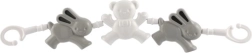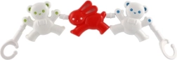 Tento plastový řetěz na kočárek se třemi figurkami medvídků a zajíčka poskytuje zábavu a vizuální stimulaci pro vaše dítě při cestování.