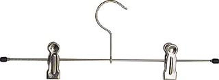 Univerzální chromové ramínko na kalhoty s 2 pevnými klipy pro snadné a šetrné uchycení oděvů. Odolná chromová konstrukce a šířka 34 cm zajistí spolehlivé uložení kalhot, sukní i dalších kousků bez pomačkání.