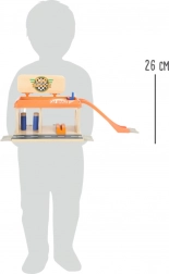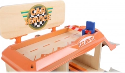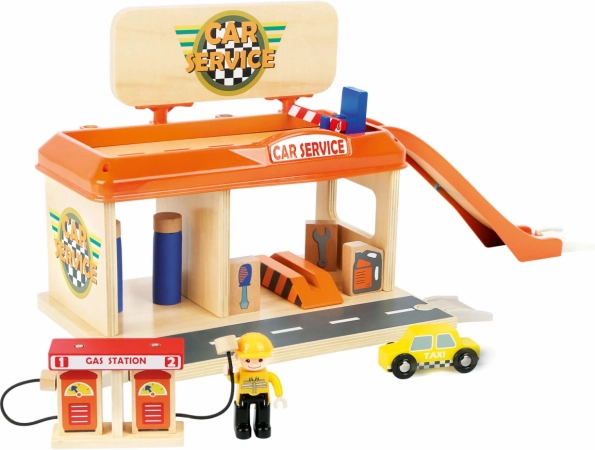 Tato dřevěná hračka je ideální pro malé automobilové nadšence. Autoservis a čerpací stanice přináší zábavu na dvou podlažích a nabízí tak ještě více prostoru k objevování. Děti si zamilují realistické designové prvky včetně rampy a parkoviště zabezpečeného závorou.