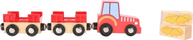 Tato dřevěná farma je ideální pro děti, které mají rády dobrodružství na venkově. Sada obsahuje 19 dílů, včetně robustní červené stodoly s funkčními vraty, traktoru s přívěsem, a několika farmářských zvířat, jako jsou kůň, kráva a prasátko. Hračka nejenže podněcuje kreativitu a motorické dovednosti, ale také seznamuje děti se základy farmářského života.