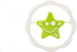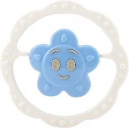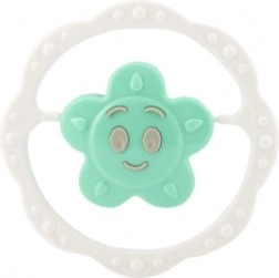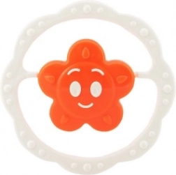 Barevné dětské chrastítko ve tvaru hvězdičky nebo kytičky, které pomáhá rozvíjet motorické a zrakové dovednosti dítěte.